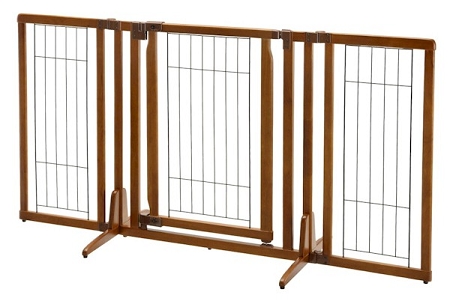 Richell's Finest Pet Gate Yet! Our always-popular free standing dog gate is now higher, features a walk-thru locking gate door, as well as adjustable side panels!