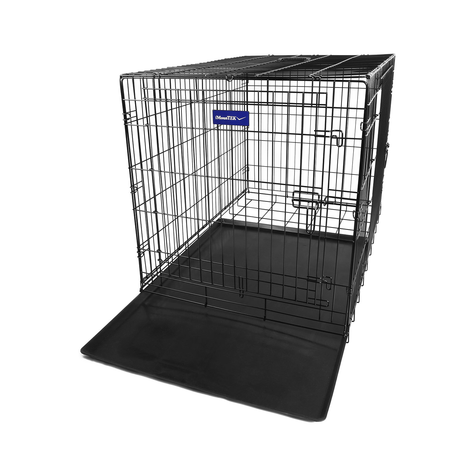 Our iMounTEK dog crate with large swing-open door on the front for front entry, which is ideal for both puppies and adult dogs come in and out conveniently. The two slide-bolt door latches for increased safety and security. Owing sturdy foldable metal construction, easily folds flat for easy storage or portability, The bottom of the crate comes with a plastic tray so that the dog’s paws cannot slip through, and the tray is removable and easy to wash.