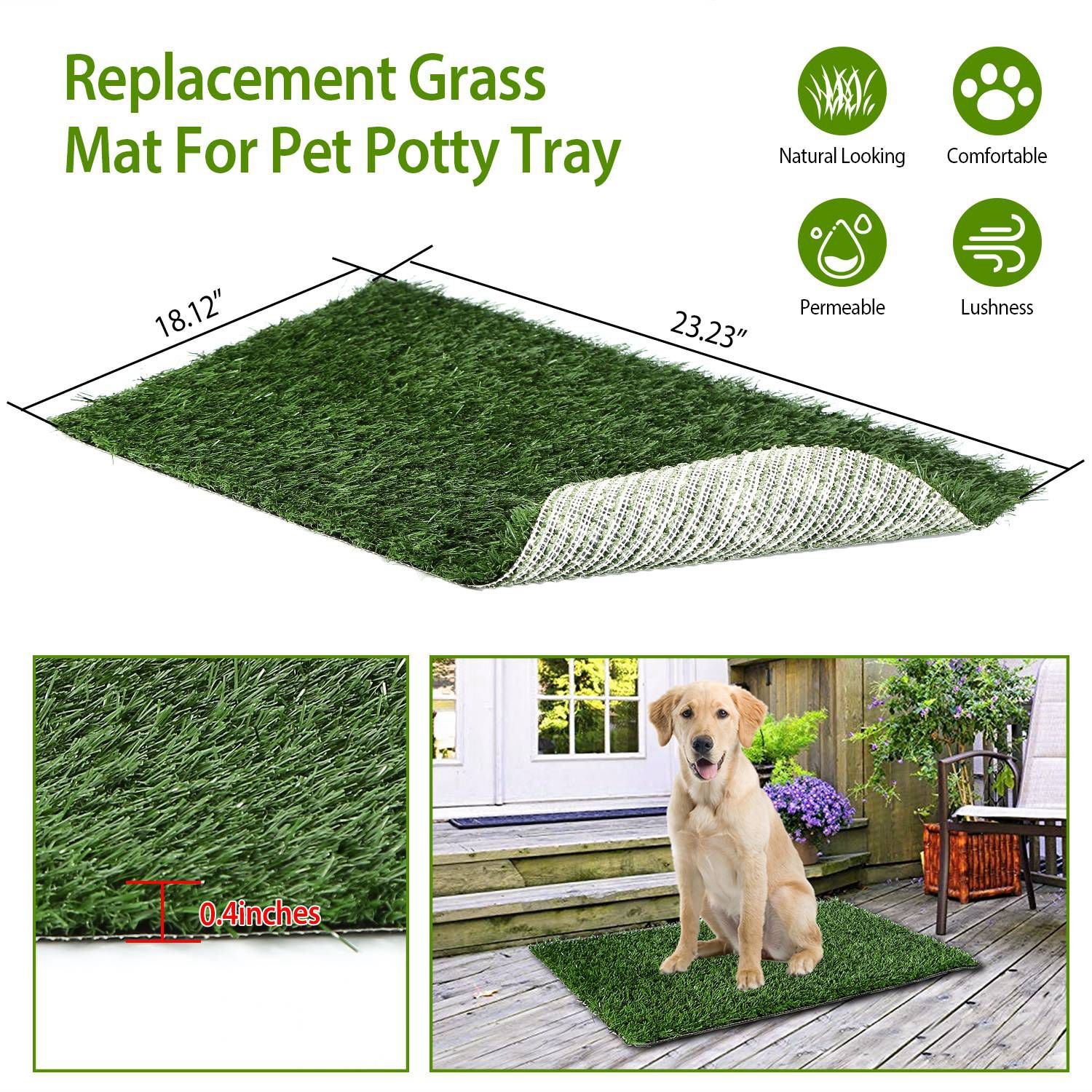 Home > 23.23x18.12” Replacement Grass Mat For Pet Potty Tray Dog Pee Potty Grass Turf Pad Fast Drainage Easy Cleaning