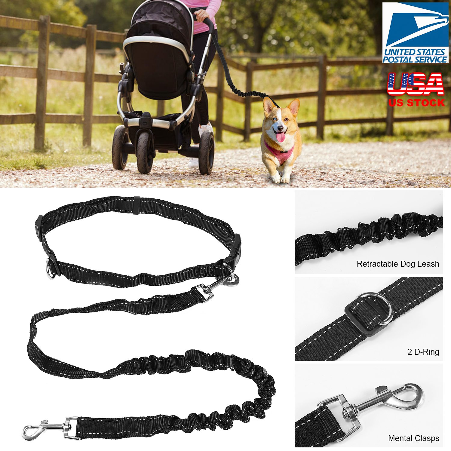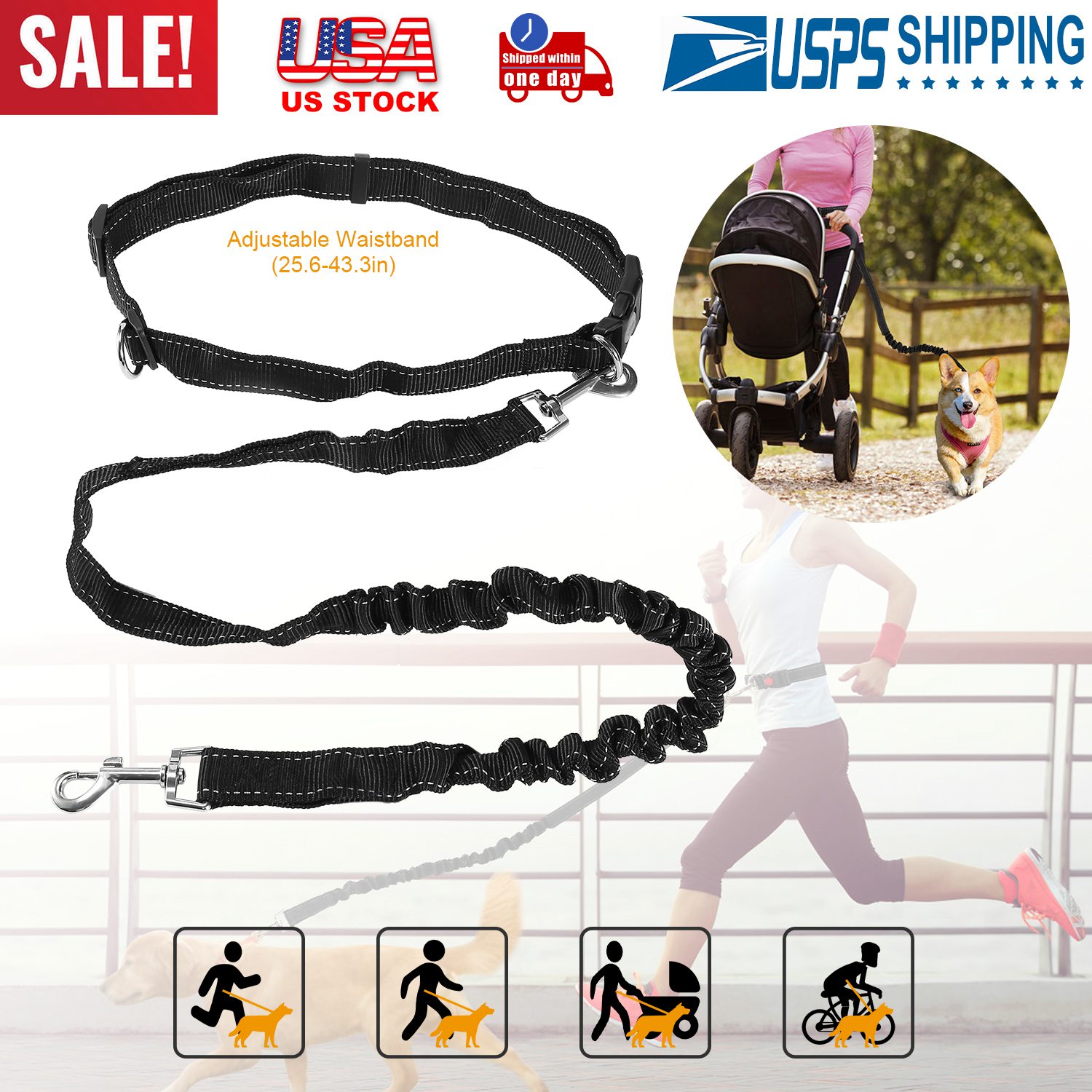 • *FREE YOUR HANDS: Adopting adjustable waist belt design, makes your hands free while control the dog. It can be adjusted from 25in to 43in to fit a large range of waist sizes. Freely use your phone or baby carriages without feeling restrained by your dog's movements.