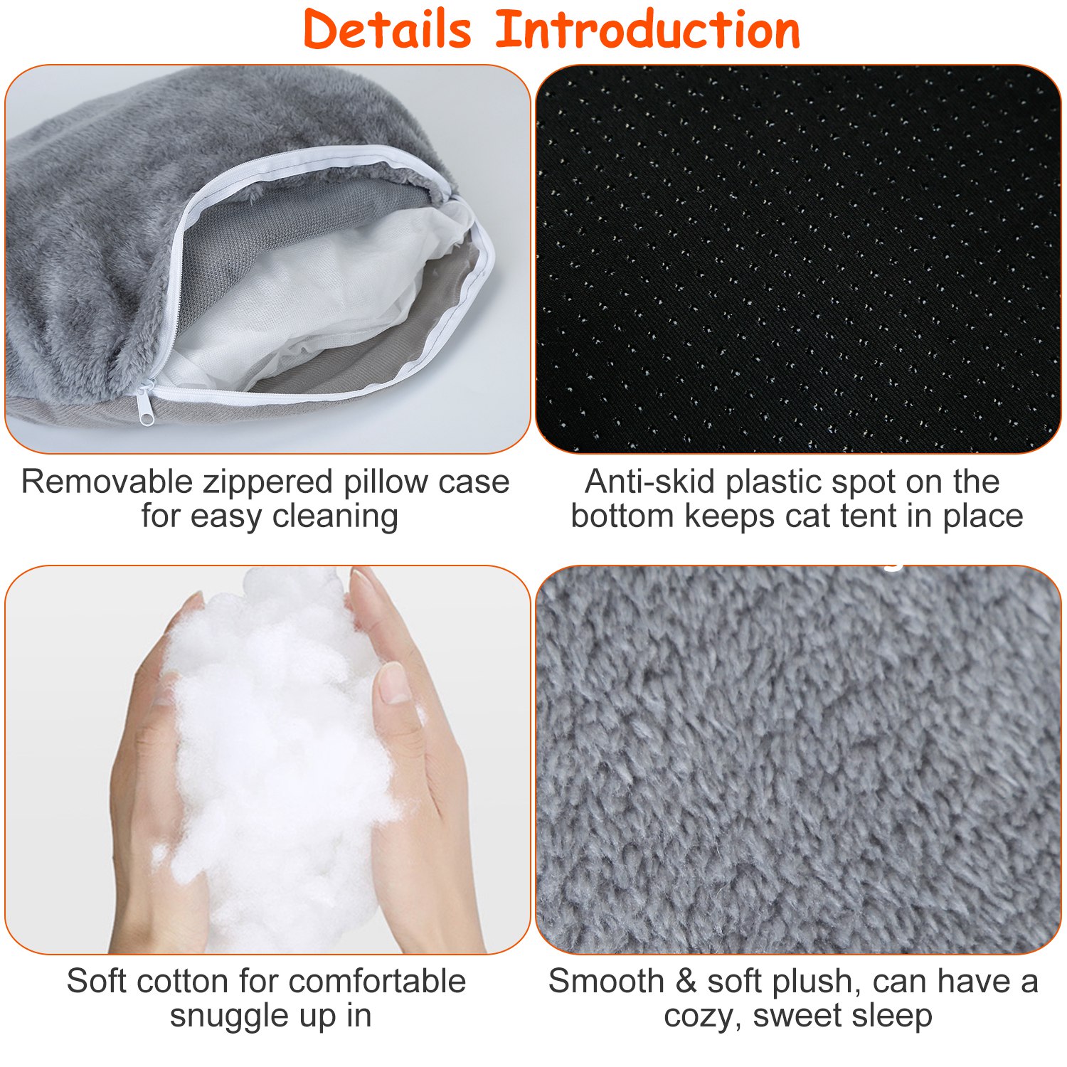 • Soft Surface & Sturdy Construction: Made of short plush outer material and filled with PP cotton, this tent bed gives pets a cozy place to snuggle up in. Well-made cat tents construction keeps stable on floor and won’t collapse on itself.