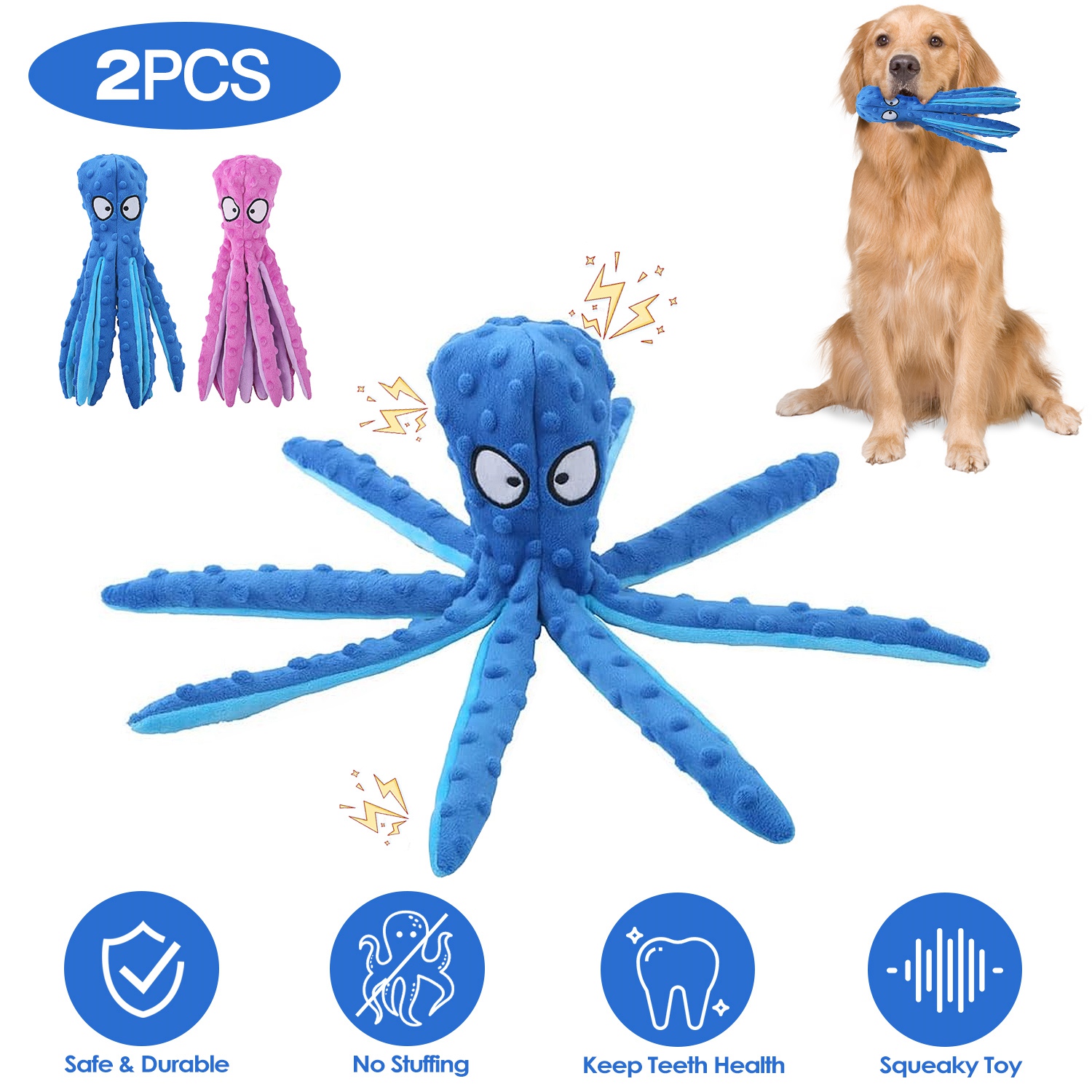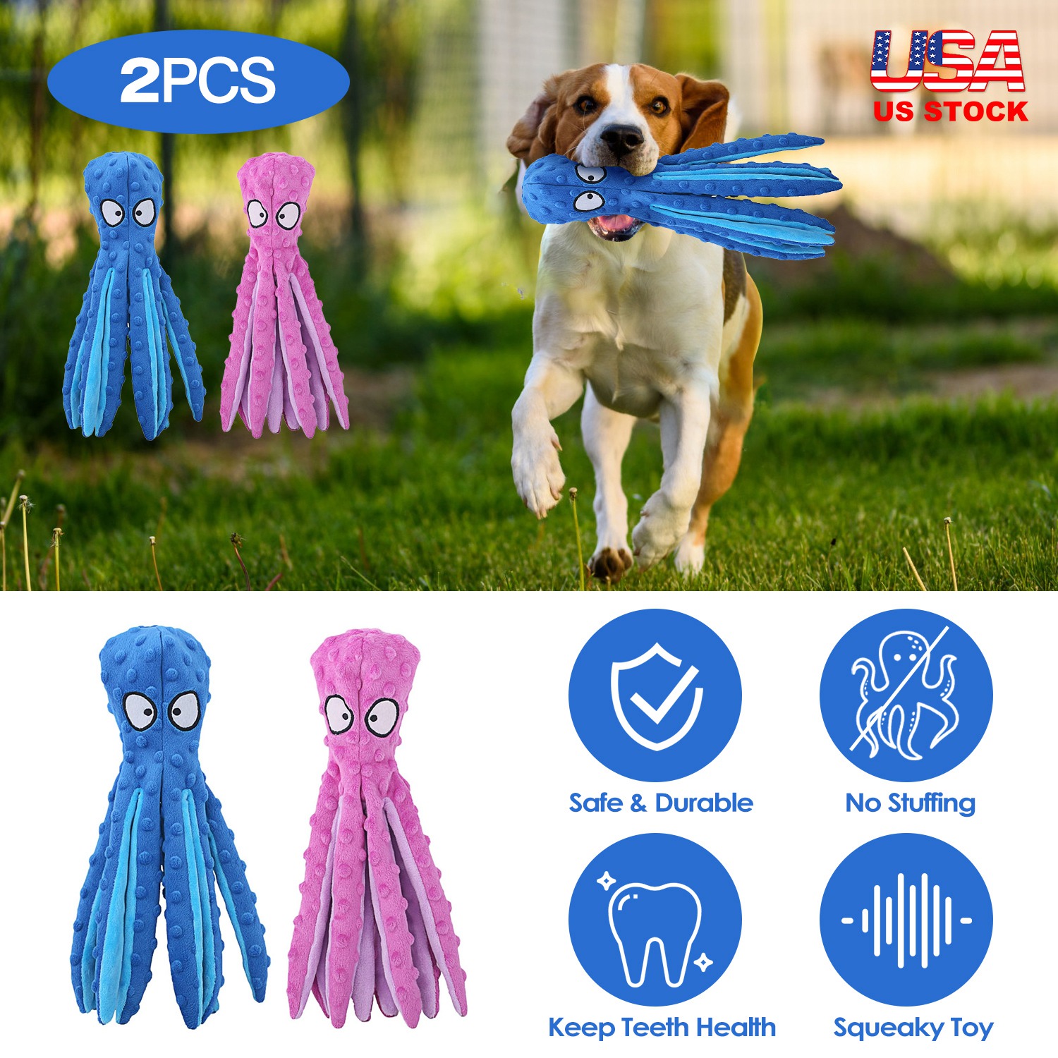 Home > 2Pcs Squeaky Dog Toys No Stuffing Crinkle Plush Octopus Dog Teething Toy Interactive Dog Toy Dog Training Toy For Puppy Small Medium Large Dog