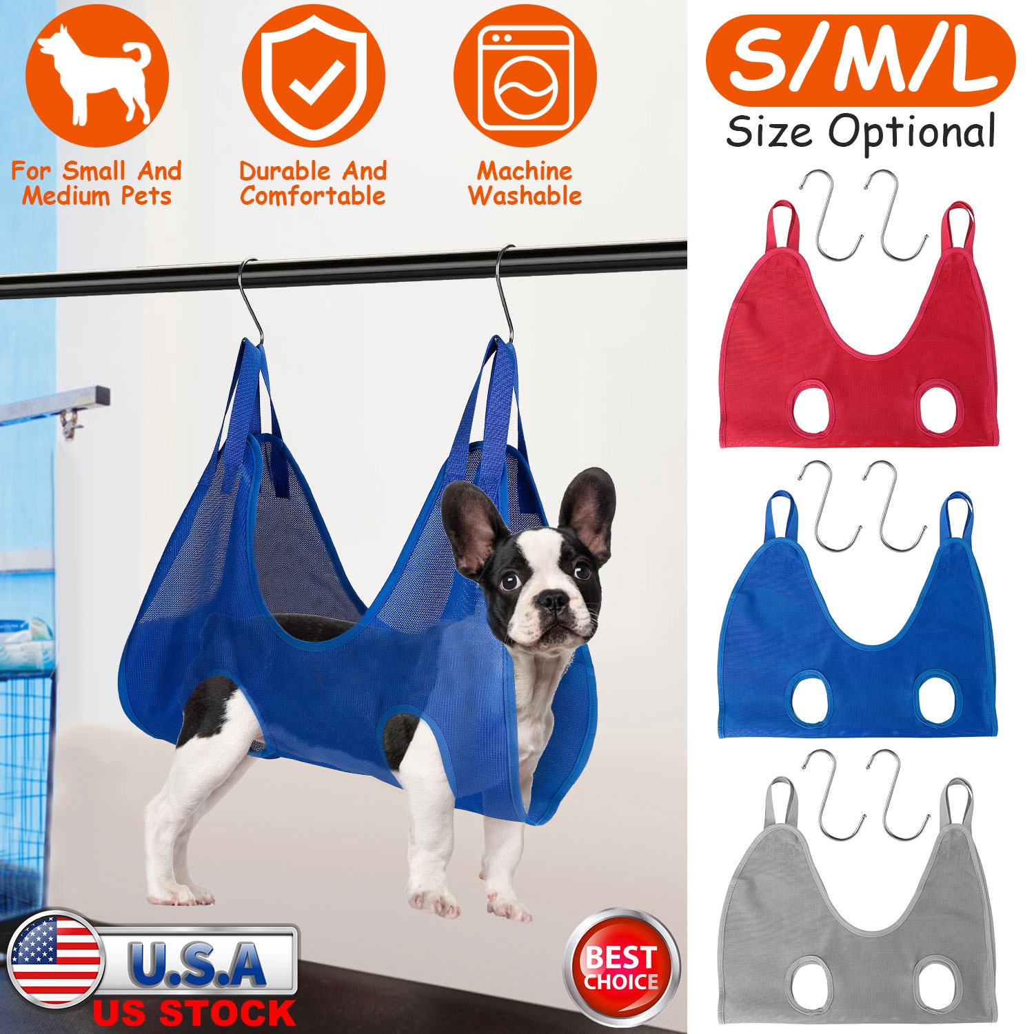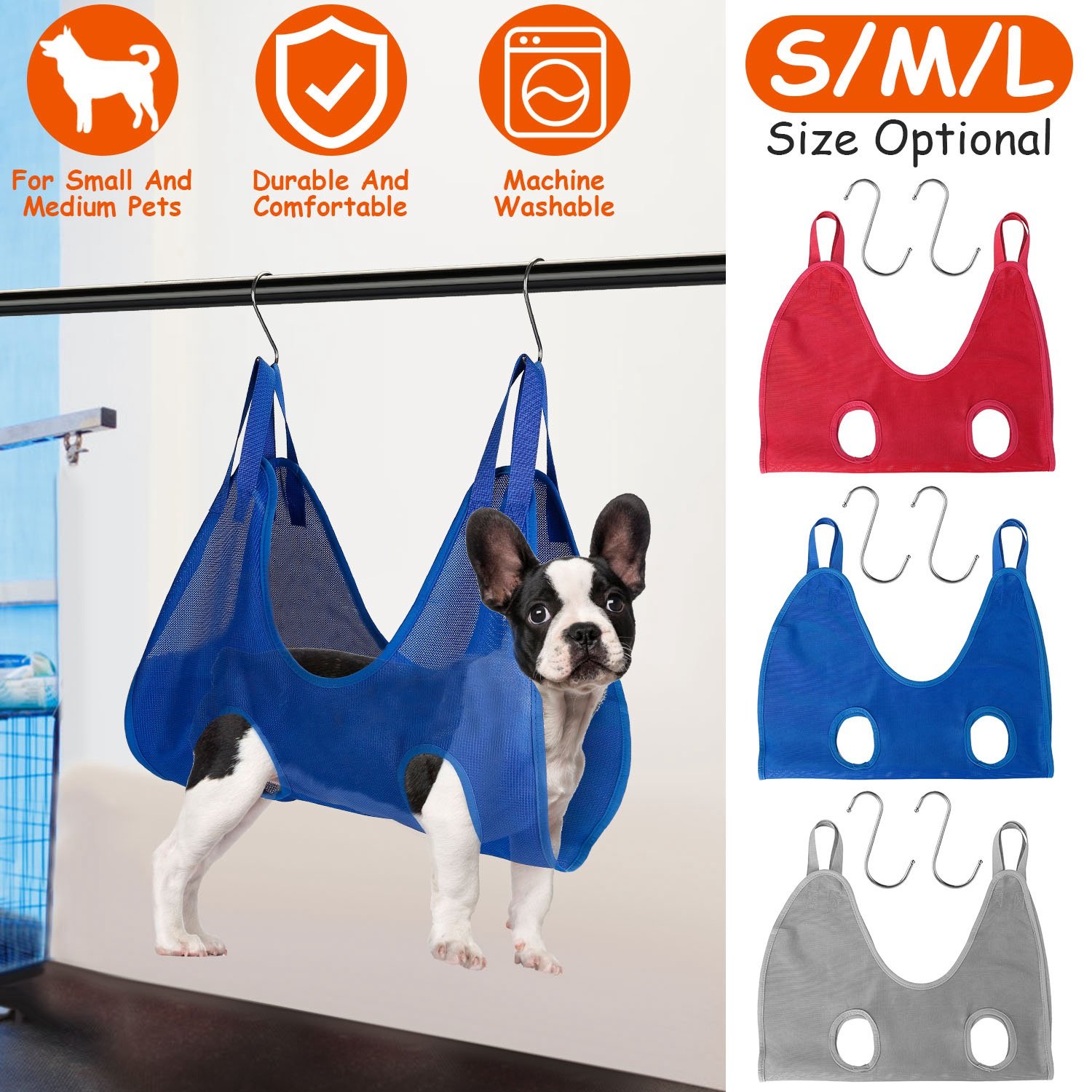 Grooming a wiggly puppy can be a challenge. Our grooming hammock provides a perfect solution by putting the uncooperative pet in the air. It will calm down immediately, which allows you to work on its legs, tail, and those hard-to-reach spots safely. Made of durable and soft Dacron, it’s suitable for small to medium pets(S/M/L for choice).